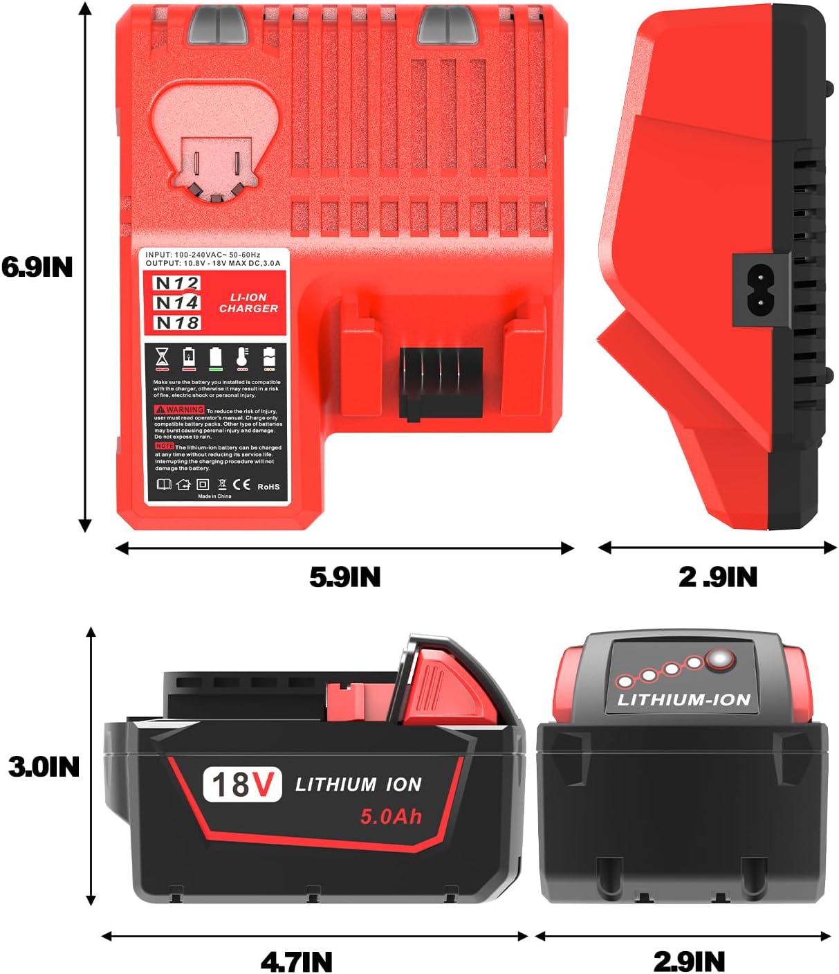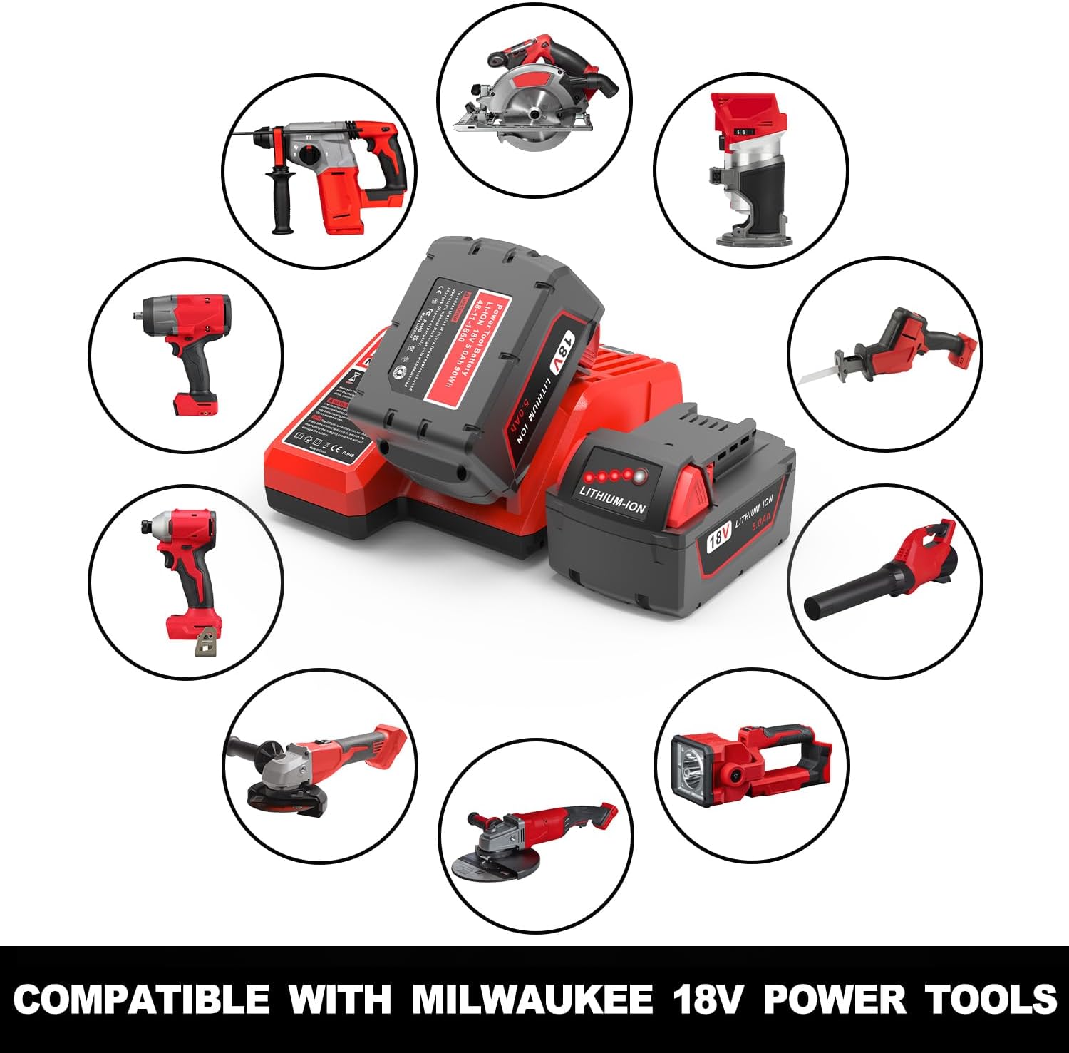 | BuiltIn Media | Replacement for Milwaukee M18 Battery and Charger Kit |