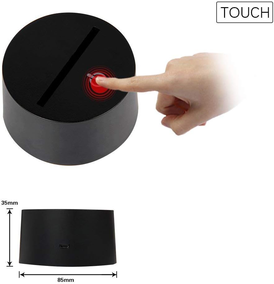 WONFAST 3D Lamp USB Power 7 Colors Amazing Optical Illusion 3D Grow LED Lamp Alien Shapes Children Bedroom Night Light Feature: -1. 7 Color change: Red, Green, Blue, Yellow, Cyan, Pink, White -2. Touch button: Press one time, one color light up, press it again, it turns off. Press it thirdly, another color light up. -3. Automatically color changing mode. Press the touch button to last color, then press it again, auto color changing mode works. -4. Coming with USB power cable, you can connecting it to your home power socket or computer USB port. -5. It can be put in bedroom, child room, living room, bar, shop, cafe, restaurant etc as decorative light. Lampshade Material:Acrylic. Power:0.5w. Voltage:5v Package include 1x Acrylic Plate 1x Bottom support 1x USB cable Note: 1. It may have a protective film on surface of the light, please tear it out before you use the light. 2. 3D just Visual, the lamp itself is Flat.