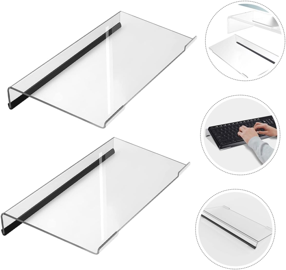 Package List 2 x Keyboard Stands Characteristics -Color:White keyboard stand -Material:Acrylic keyboard tilt stand -Size: 43.00X15.00X4.00cm/16.90X5.89X1.57in computer supplies for desk - Special design and it's in fine craftsmanship. Keyboard Holder is the replacement for your old, broken one keyboard lifter. - Creative tilted design, more suitable for human hand feeling and typing experience keyboard display stand. - This keyboard stand is designed to fit standard keyboards, making it a versatile accessory for any workspace keyboard support holder. - Fit for keyboards of various specifications to bid farewell to cluttered desktop clear keyboard rack. - Made with acrylic material, the acrylic keyboard stand is simple and fashionable, which can match any style of decoration tilted computer keyboard holder.Goods Descriptionoffice keyboard stand Fine workmanship ensures its durability and practicality.keyboard stand for desktop This ergonomic tilted computer Keyboard Holder is made of acrylic material, which can withstand long-lasting use.computer accessories for desk Features the acrylic material, which has high durability, not easy to deform