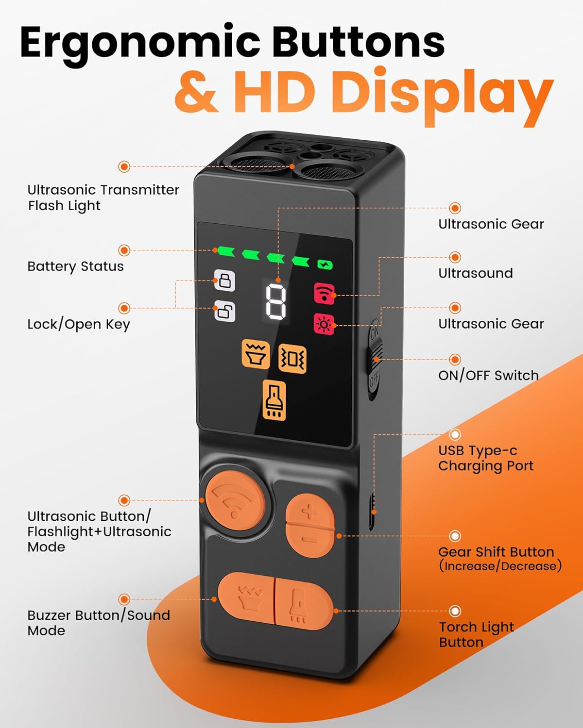 | Included Components | 1*Manual, 1*Type-c charging cable, 1*four-head dog repeller |