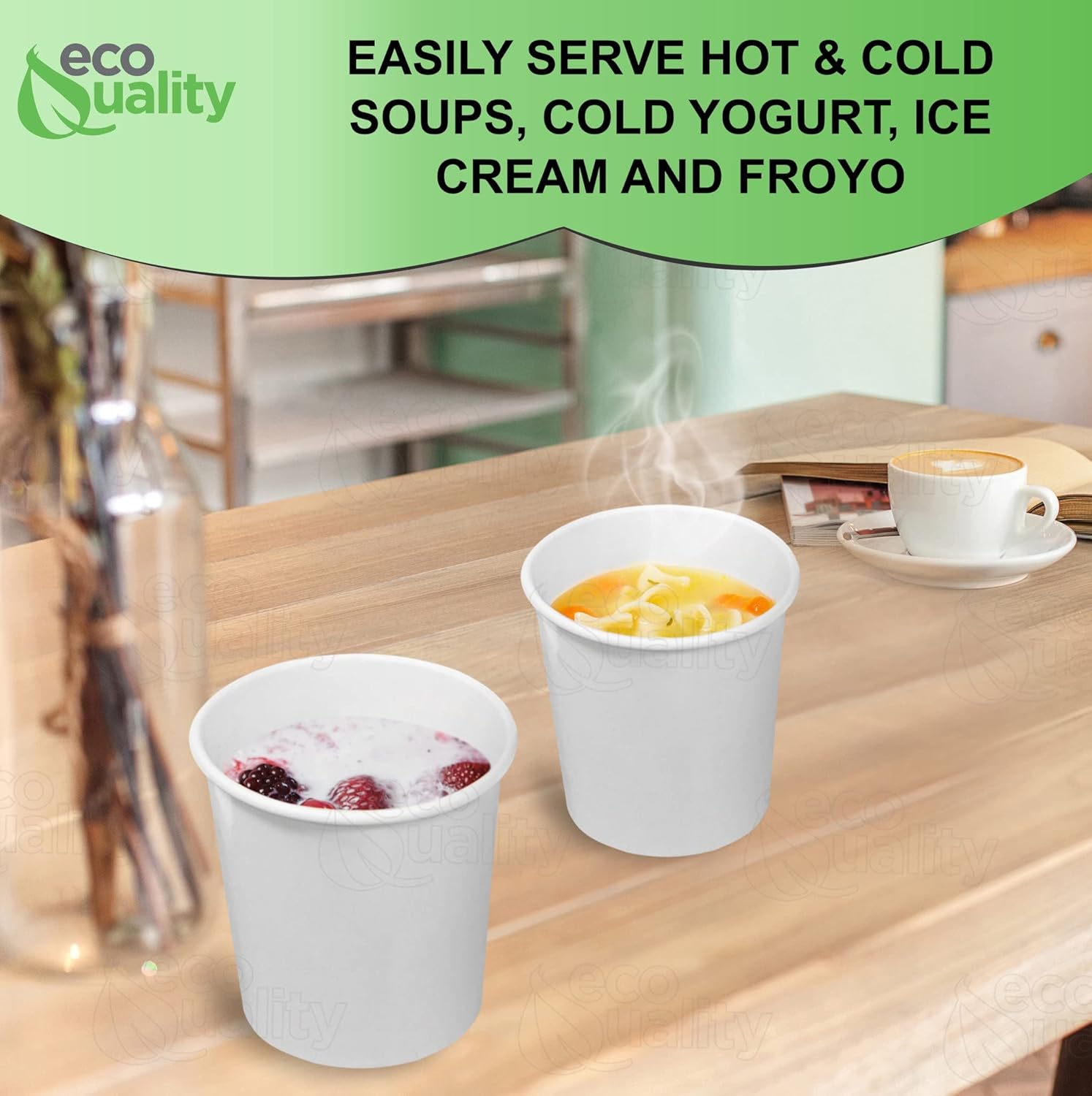 EcoQuality Disposable White Paper Soup Containers✔ Microwavable✔ Disposable for Easy Clean Up✔ Recyclable & Eco Friendly★ Great for your Favorite Soup's, Ice Creams, Frozen Yogurt's★ Used by many Deli's, Restaurants, Ice Cream Shops, Salad Bars and household's. Easy to Store Frozen / Hot Foods!★ Compostable and Eco-Friendly⚠ Please Recycle and Re-useComes in a 25 Count Packaging LIDS NOT INCLUDED