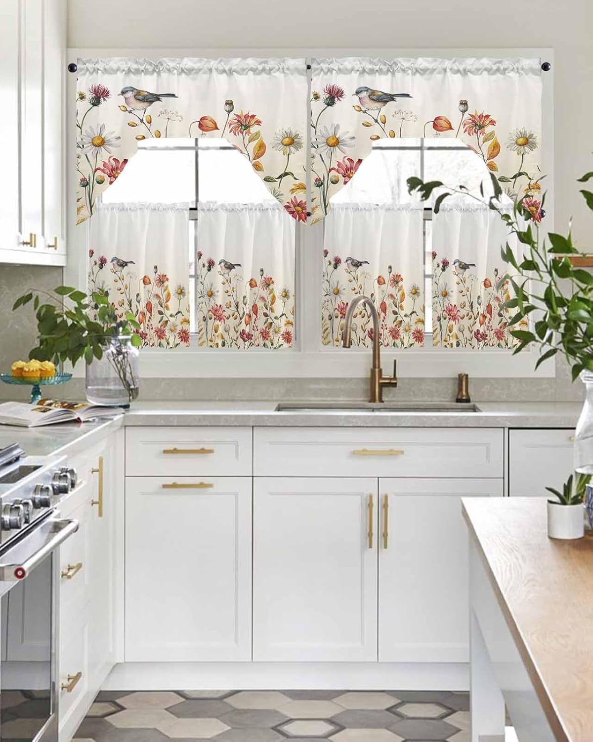 Widely Used: Our universal swag and tier curtain set is highly recommended by many customers as home decoration items.Beautiful and practical rideaux de chambre decoration are not only used in kitchens, bedrooms, dining rooms, living rooms, bathrooms, but also match other occasions, such as home office, laundry room, kids room, nursery, balcony, classroom, pet room, guest room, playroom, study room, washroom, coffee shop, cafe shop and more.Ideal Gift: Are you still worried about what gift to give for Christmas, Halloween, Thanksgiving, Independence Day, Mother's Day, Father's Day, Housewarming, Valentine's Day, St. Patrick, Easter, New Year? Why not take a look at our charming kitchen cafe curtain set, classic designs perfect for gifting to family, friends, colleagues and neighbours, etc.Various Styles: Our window drapery can perfectly match the style of your home.We have retro pastoral style, country farmhouse style, simple modern style, European aristocratic style, romantic French style, etc.Optional Colors: Bright colors are an important part of kitchen curtains sets for windows clearance.We have black, white, grey, red, brown, silver, beige for adults and pink, green, orange, blue, yellow, rainbow, multi-color for kids.Tip: Due to everyone uses different light or monitors, there may be a slight error in the color of the window curtain panels. Don't affect the beauty and use of the product.Just rod pocket curtains, no rods.
