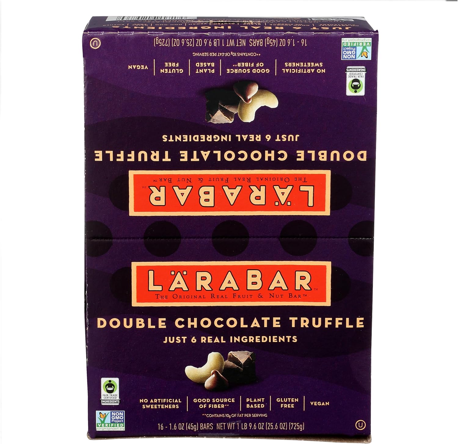 Larabar Original Real Fruit & Nut Bars, Double Chocolate Truffle, Good Source of Fiber, No Artificial Sweeteners, Fair Trade, Vegan Friendly, Kosher, Gluten Free & Non-GMO, 1.6 Ounce (Pack of 16)