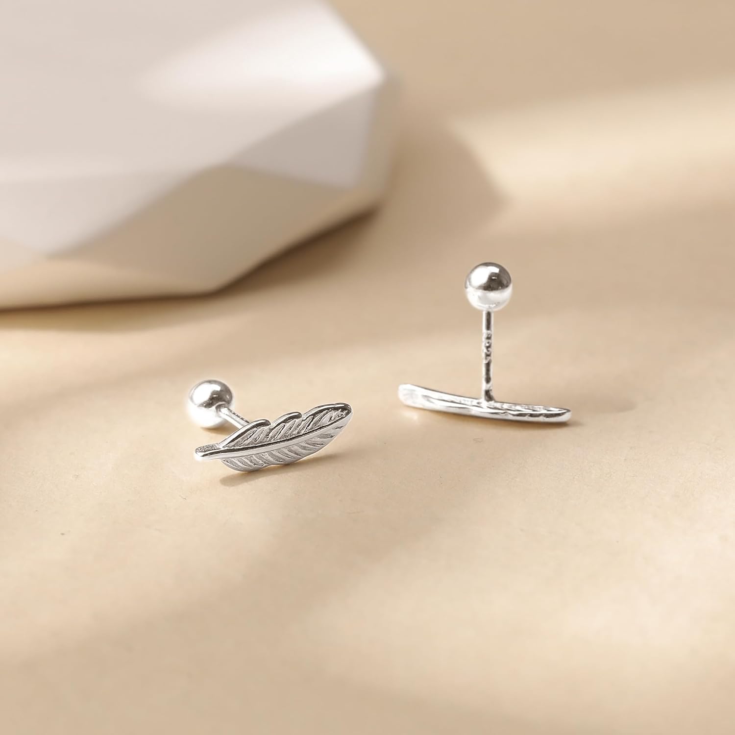LOVECOM 925 Sterling Silver Post Feather Cartilage Studs Earrings for Women Cute Tiny Animal Feather Flat Back Piercing Earrings Small Ear Crawler Earring Jewelry Birthday Gifts to Daughter