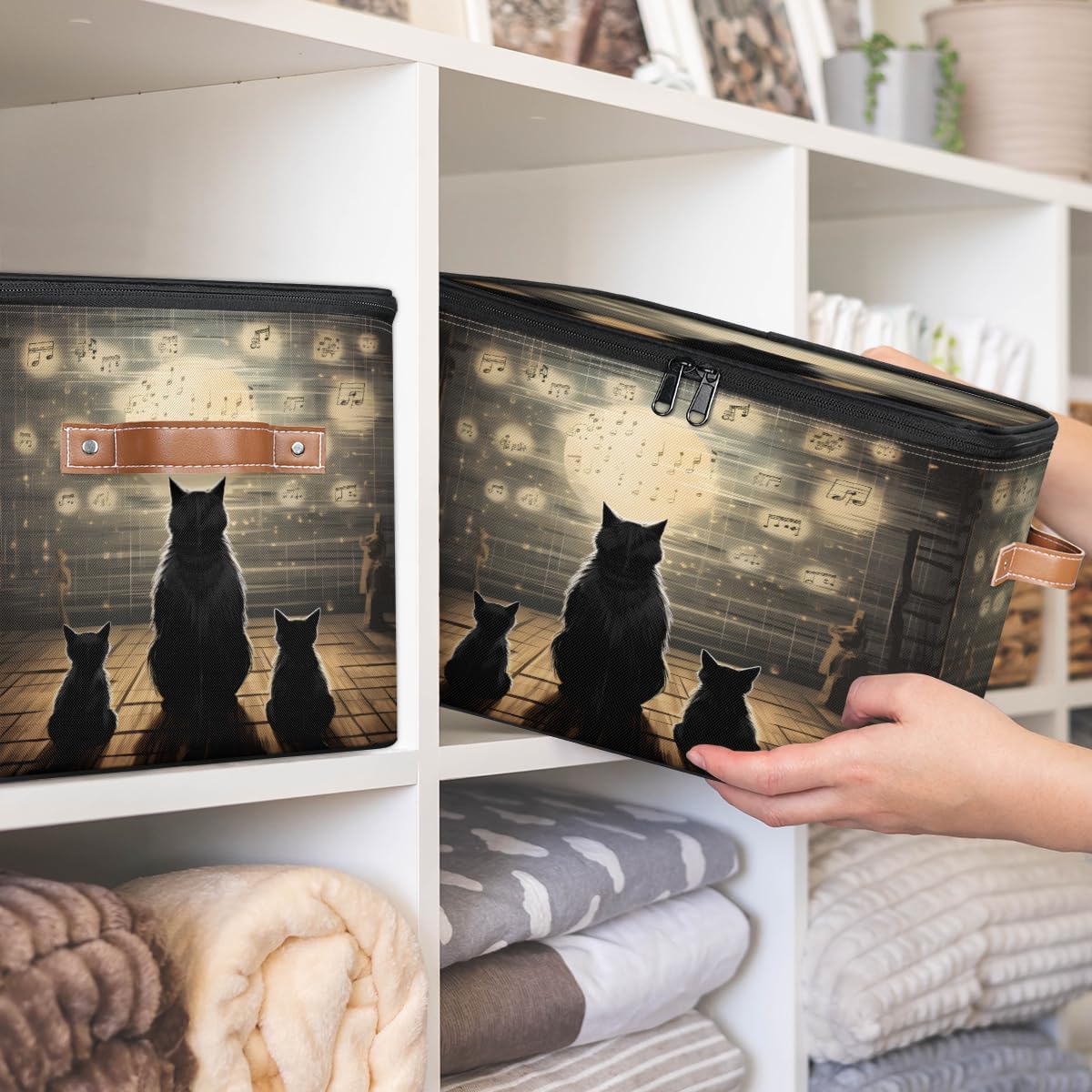 Storage Bins Size: 15(L)x 11(W)x 9.5(H)inches. Large capacity storage basket, can hold a lot of things, save space, also can prevent things messy, keep the home and room clean and orderly. Multi-function: Foldable storage box can be used as closet organizers, toy storage, shelf basket, blanket basket, storage box, laundry basket, wardrobe basket, clothes storage bins, bathroom baskets, under bed storage containers and so on. Can store toys, blankets, books, clothes, quilts, socks, shoes, all kinds of items, can be put anywhere you want. Various Occasions: Storage boxes are suitable for closet, shelf, bedroom, closet, kid's room, bathroom, nursery, laundry room, living room, dormitory, apartment, office, locker room, pantry, balcony, living room, kitchen, game room and other occasions. Practical Gifts: The clothes organizer is a thoughtful choice for birthday parties or Christmas, Mother's Day, Father's Day, Valentine's Day, Easter, etc., for mom, dad, him or her, friends or colleagues.
